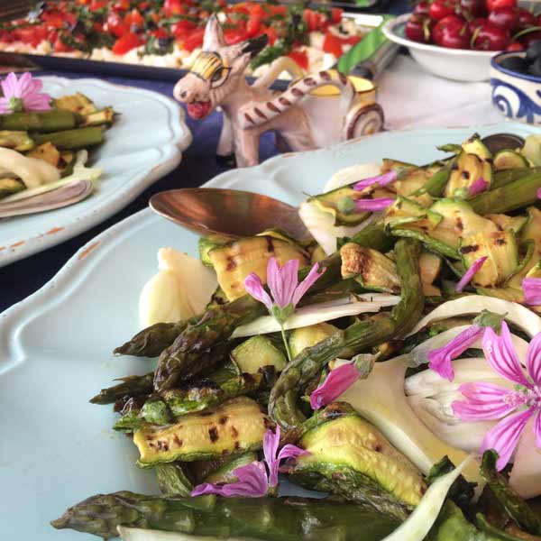 This grilled zucchini salad is a simple recipe but it looks and tastes amazing! It’s perfect for BBQ, picnic, a light dinner. You can also add different type of other veggies in the season such as asparagus (grilled), green beans (steamed) or raw vegetables like fennel. To garnish add toasted pine nuts, almonds or flowers that you have in your garden.