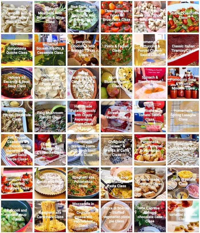 Among other benefits, Chicca’s Cooking Club gives members a seasonal pass to six live cooking classes. Participants cook alongside Chicca while she broadcasts live from her home in Tuscany.