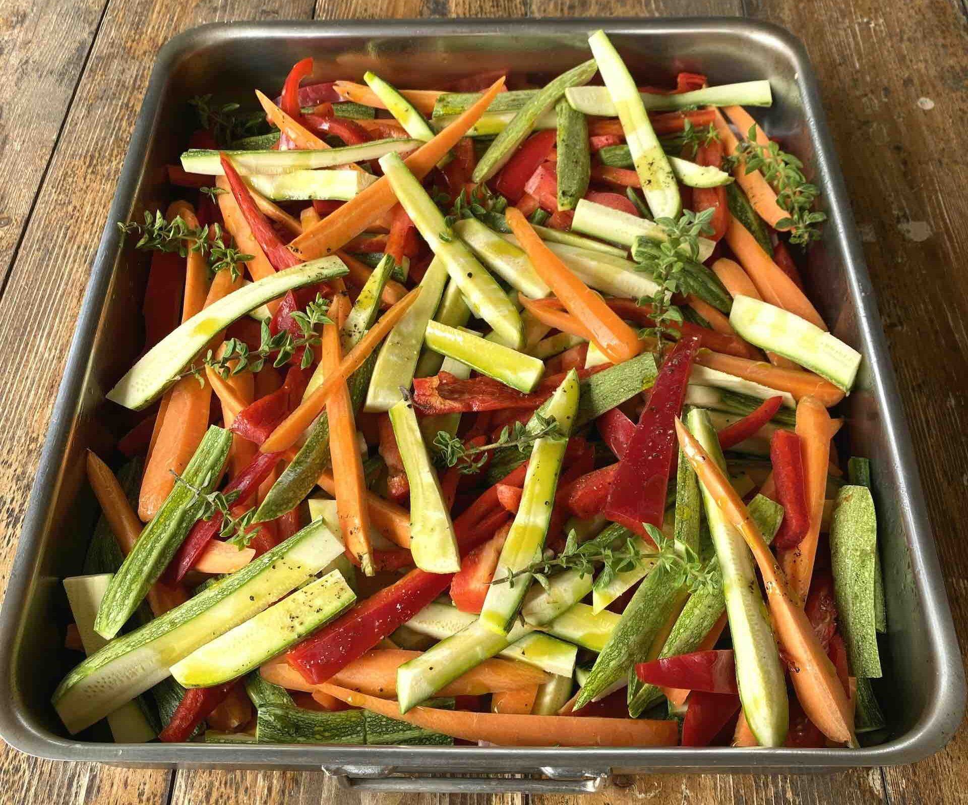The vibrant colors of summer vegetables are my constant source of inspiration, and even the simplest ingredients can bring joy and beauty to our plates. Carrots, zucchini, bell peppers, spring onions, and fresh oregano—baked at a low temperature—are my latest culinary addiction.