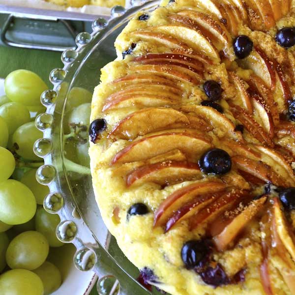 We’ll cook together a sweet treat with the least sugar and butter content. In this healthy cake, apples are wonderfully paired with blueberries to have an extra moist and a tangy taste. It comes together very quickly, the fruits stay on top of the cake and are sprinkled with butter flakes and brown sugar. You can use other fruits like peaches instead of apples if not in season. Delizioso!