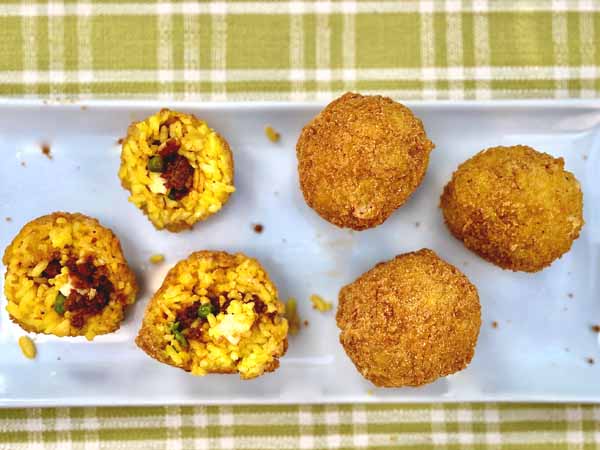 I’ll share with you my recipe to make the perfect arancini, with a crispy exterior that holds a rice ball with a melting heart. Your heart will melt, too, after the first bite.
