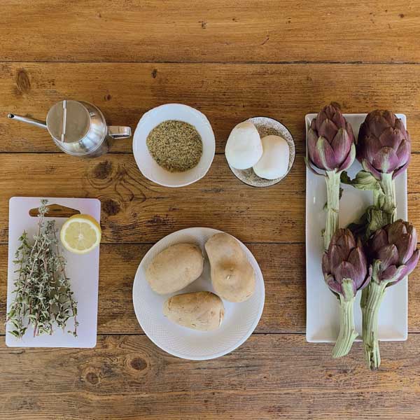 In this class I’ll show you how to clean artichokes and use them in one of my family’s favorite vegetable sides. In this casserole, artichokes are combined with potatoes. To ‘glue’ them together, I’ve used layers of mozzarella. Marjoram adds a distinctive flavor to the dish and the crunchy top will make you love this dish forever!