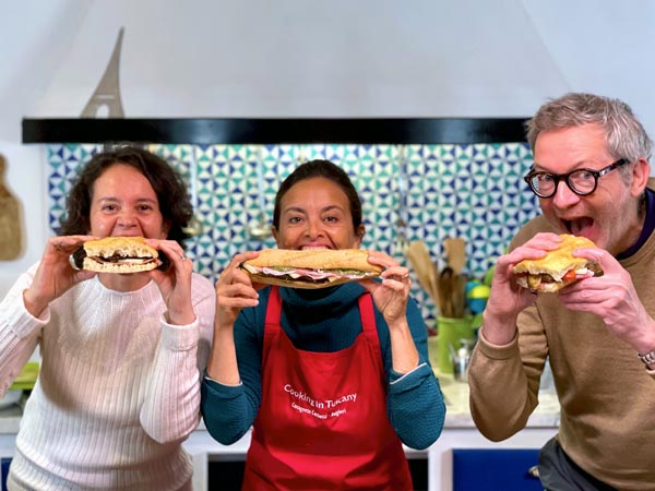 During this fun class, we’ll prepare a delicious and fancy meal out of a sandwich. We’ll make the panino di Giovanni, inspired by a Tuscan tavern in the middle of the Livorno food market. There, you can eat traditional and genuine Italian cuisine, paired with a glass of red wine from a typical Tuscan flasks. The panino can have as many layers as you like, but Italian salsa verde should never be missed to add a tasty creaminess to the sandwich. We’ll pair the panino with a much-loved bell pepper casserole. It’s so delicious, I’m sure you will keep making it throughout the summer while the peppers have their best flavor. Just because it is so good.