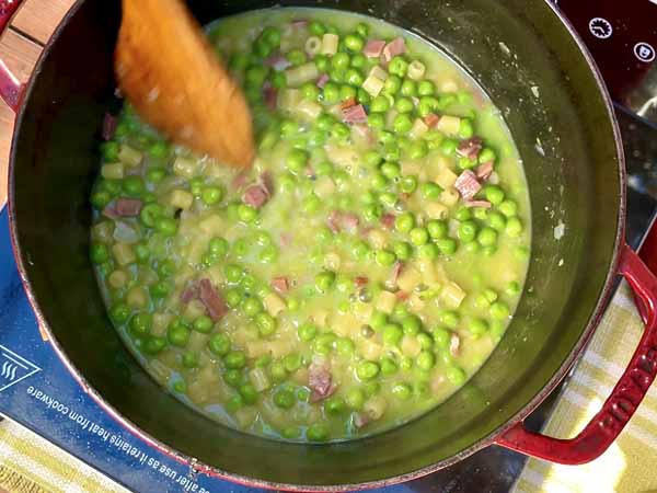 Pasta e piselli is a recipe that I grew up with. It was part of our family’s winter repertoire. Made with a few simple ingredients and only one pot, it comes together quickly and easily.